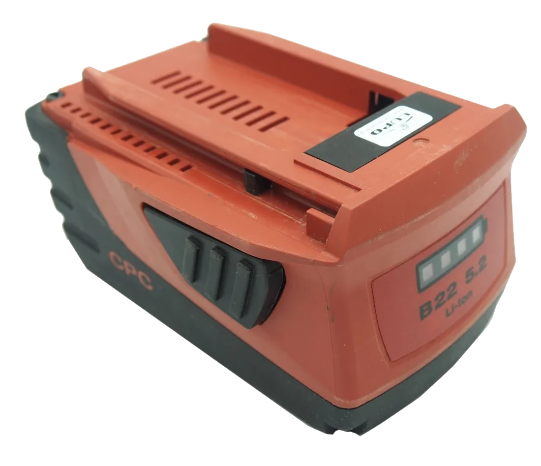 In jedem Hilti B22 Akku verbauen wir neue, hochwertige Lithium-Ionen-Zellen mit einer hohen Kapazität von 5200 mAh. Das sorgt für eine lange Lebensdauer und zuverlässige Energieversorgung – selbst unter anspruchsvollen Einsatzbedingungen.